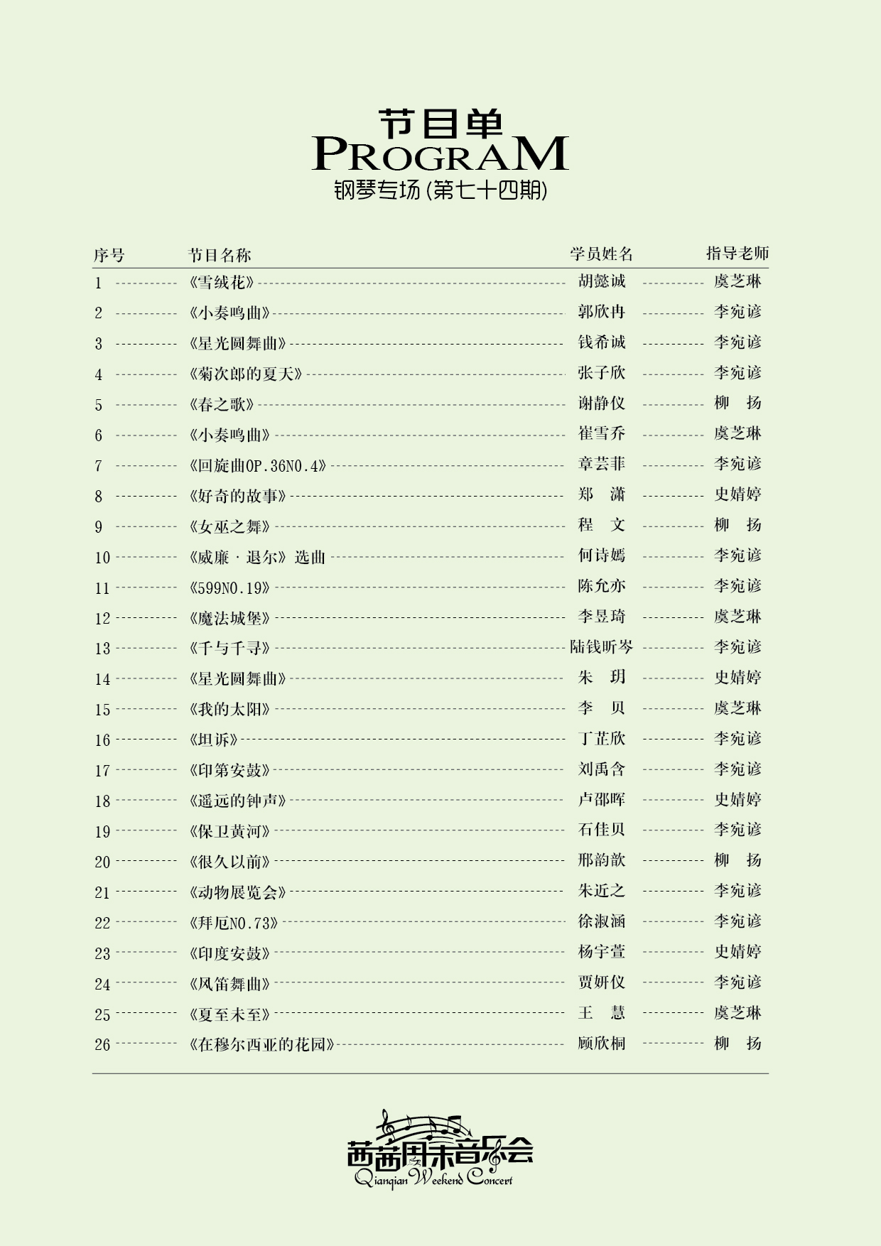 七十四期周末音乐会—钢琴专场于11月24日晚在茜茜艺术体育中心校区举行!